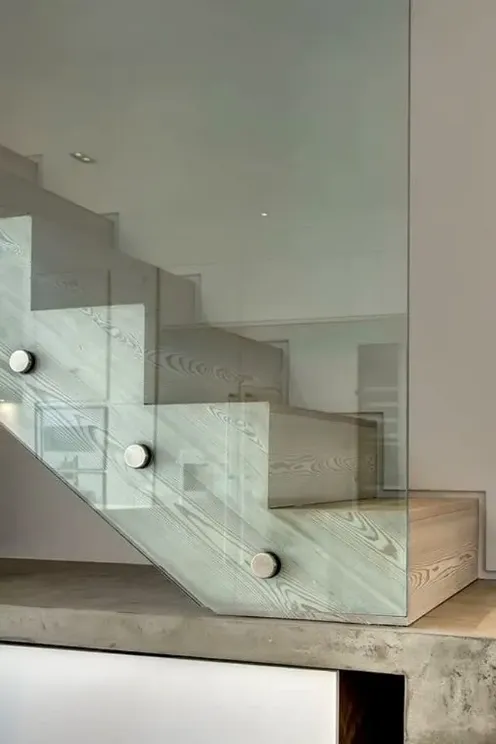 Бескаркасное ограждение лестниц. Придает лестницам эффект невесомых перил при умеренном бюджете.